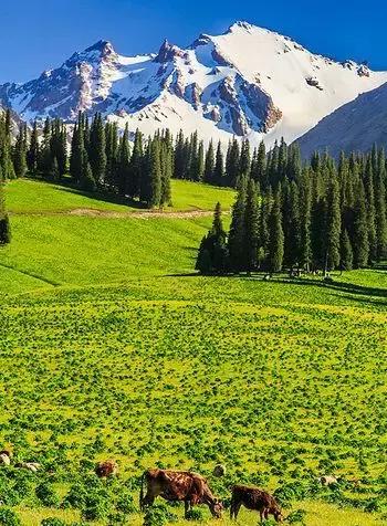 天山草原,位于新疆天山山脉中,是我国最美的草原之一,你可以看到蓝天白云、绿草如茵,还有那悠闲的牛羊,你可以尽情地感受大自然的美丽与宁静。